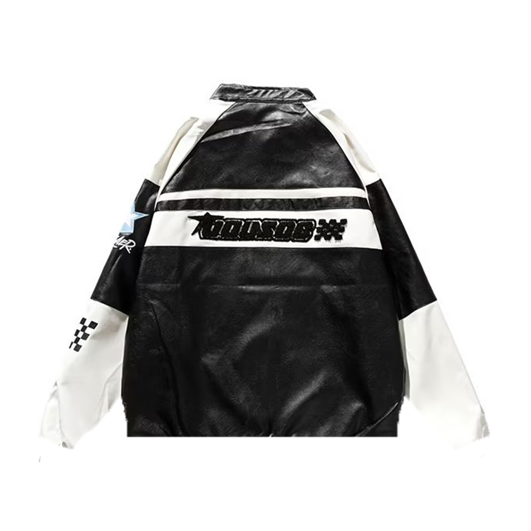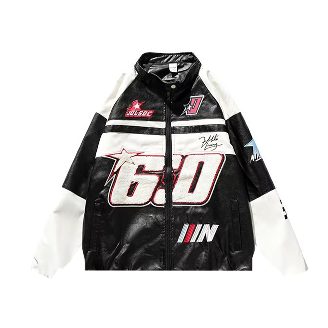 Luce un estilo audaz y moderno con esta chaqueta de cuero sintético, diseñada con números bordados que resaltan tu personalidad y actitud urbana. Ideal para fans de la moda streetwear y para destacar en cualquier ocasión.
