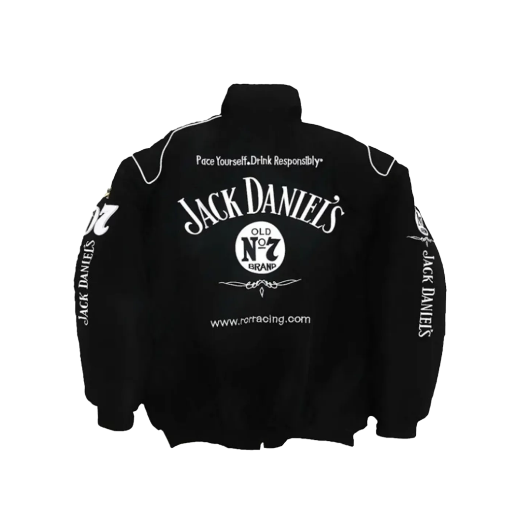Eleva tu estilo con esta chaqueta Jack Daniels, confeccionada en poliéster y algodón de primera calidad. Sus bordados y apliques exclusivos aportan un detalle único que combina elegancia y un aire racing inconfundible.